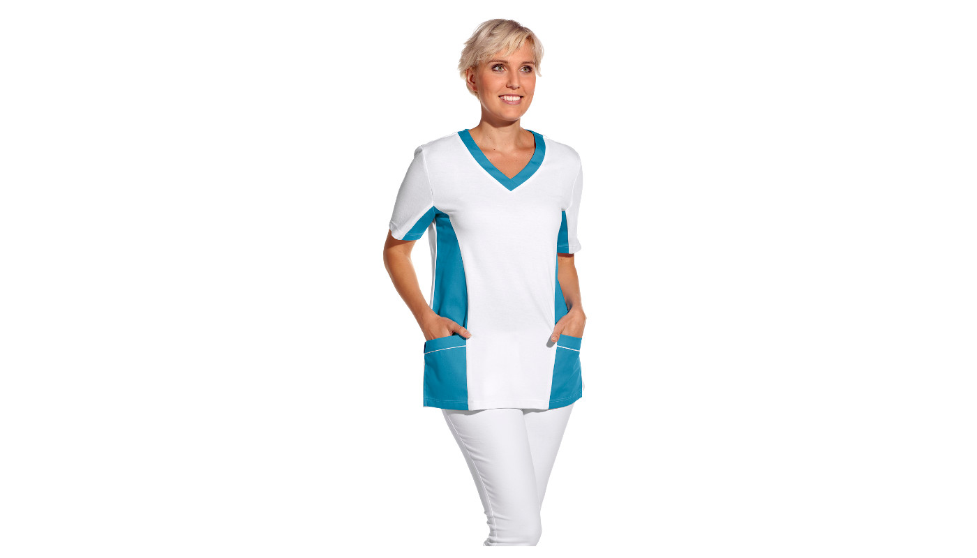 Schlupfkasack Pique, weiß/türkis 160108-2531-0176